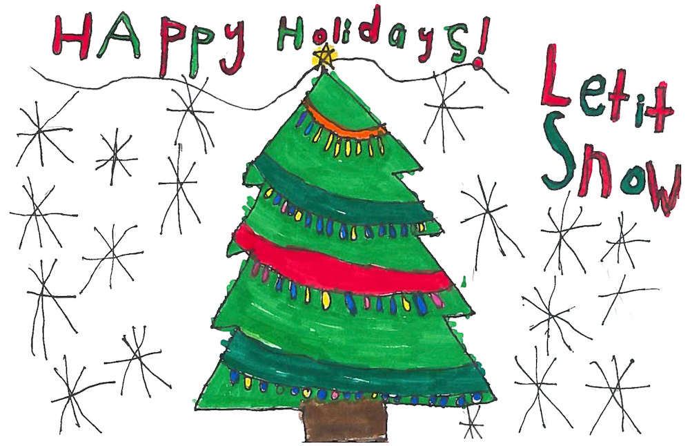 Each year we work with students at our partner schools to help us design our company Christmas card. In art class, students create their best holiday designs for submission to the contest. The winning designs are featured in our company Christmas card.
